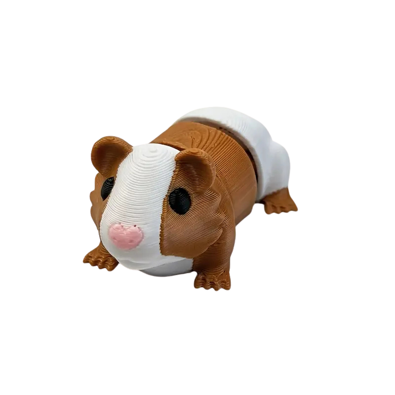 This is a 3D-printed guinea pig toy with articulated joints. Its flexible design allows it to wiggle and move naturally when you play with it in your hands, making it both cute and interactive.