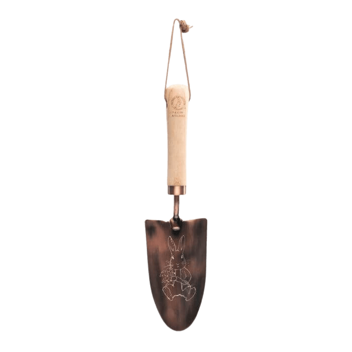 This lovely Beatrix Potter gardening trowel is perfect for gifting to a gardening enthusiast. Made from stainless steel (copper finished) and 100% sustainable wood, this trowel features a charming laser etched Peter Rabbit character art and an engraved brand logo. Trowel also features a hook and hang loop for easy storage. Presented with a branded swing tag which is made from recycled card.