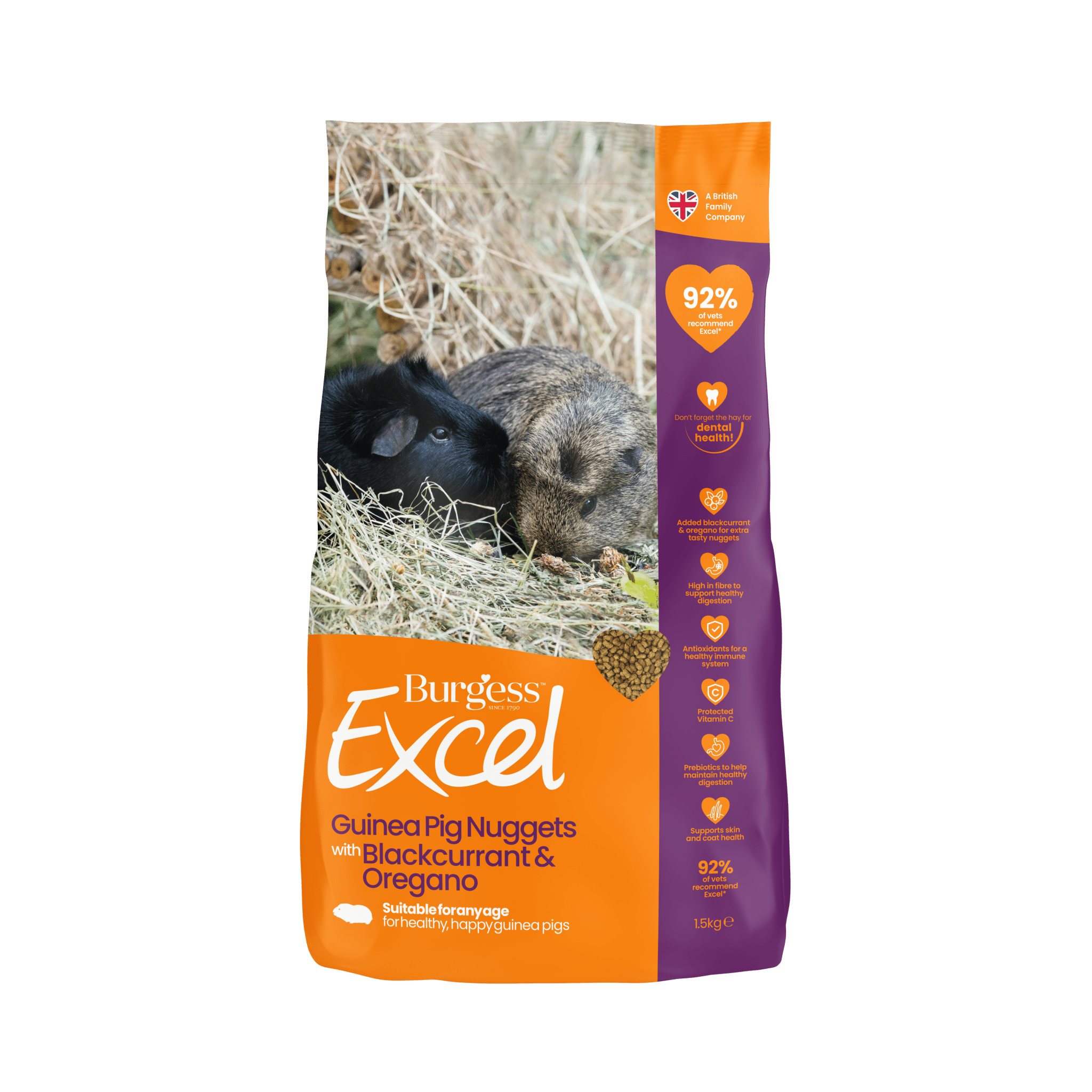 If your guinea pig has never eaten Burgess Excel Guinea Pig with Blackcurrant and Oregano before, mix it gradually with it’s existing food, gradually feeding more each day over a week until they are only eating Burgess Excel Guinea Pig with Blackcurrant and Oregano.