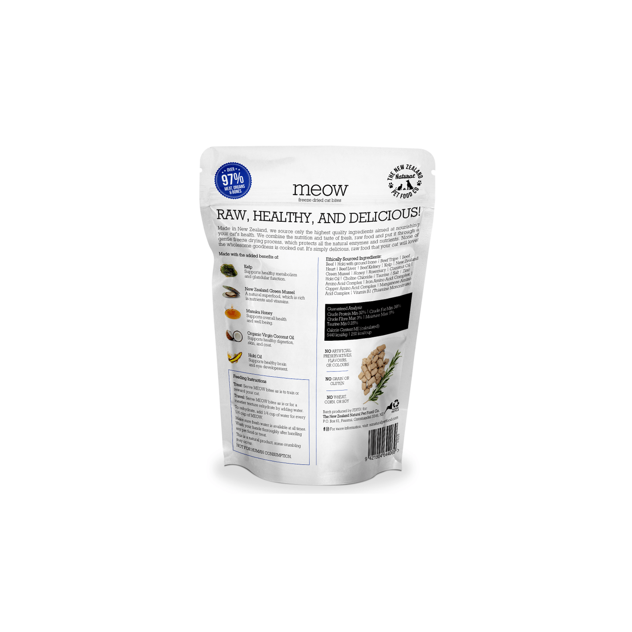 MEOW is made using only the highest quality ingredients aimed at nourishing your pet's health. We combine the nutrition and taste of fresh, raw food and put it through a gentle freeze drying process which protects all the natural enzymes and nutrients, so none of the wholesome goodness is cooked out.