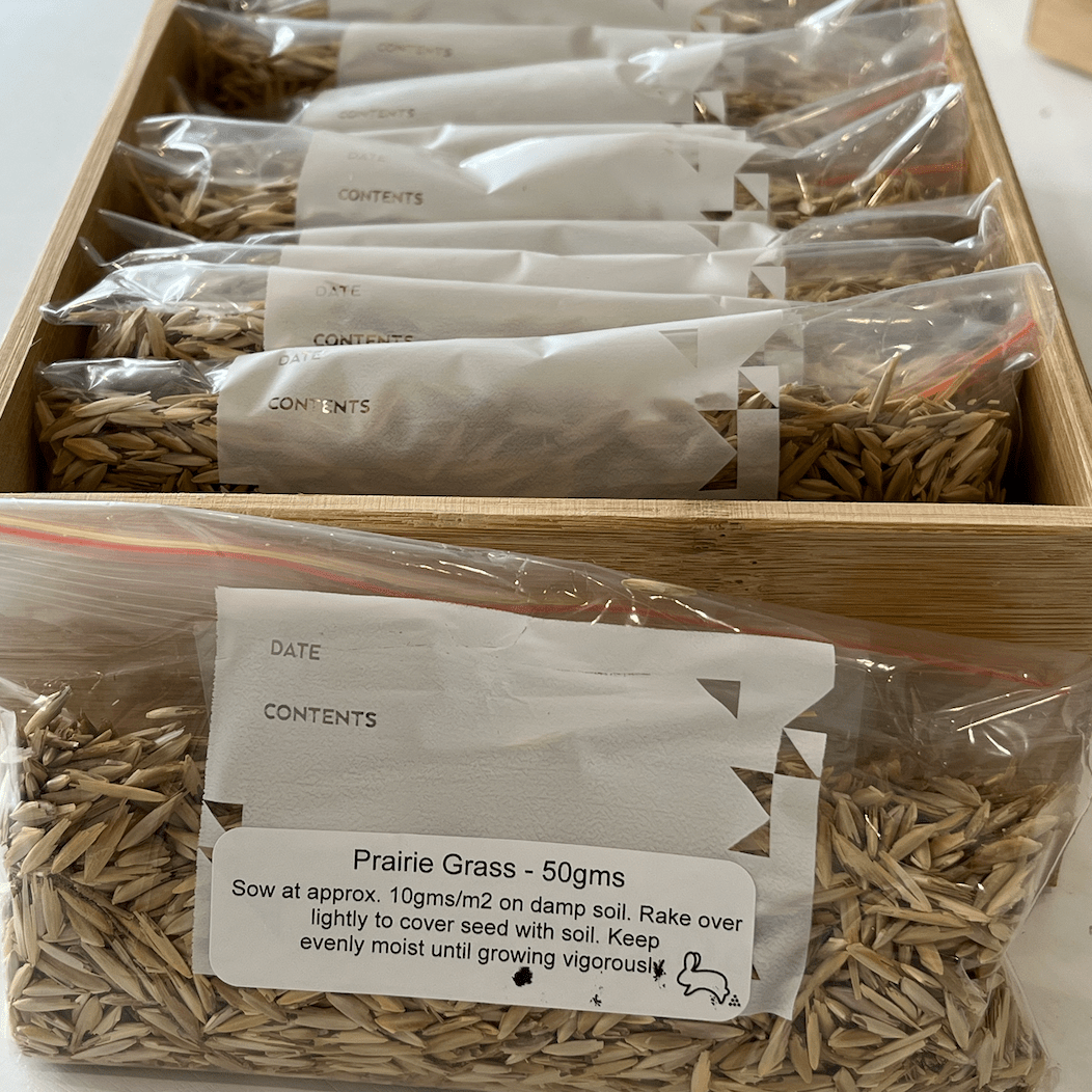 Prairie Grass - a robust perennial grass that rabbits love. Recommended sowing rate of 2.5gms/m2. Recommended sowing depth of between 10-20 mmPrefers fertile, free draining soils,It will not tolerate waterlogged conditions. Suited to environments with annual rainfalls of below 850 mm but if higher they must be on free draining soils. Has very good heat tolerance and is capable of being sown in both spring and autumn in summer dry environments. If spring sown it should be established early before the onset of summer conditions. It has good cool season activity. Trim off/Do not feed any seed heads.