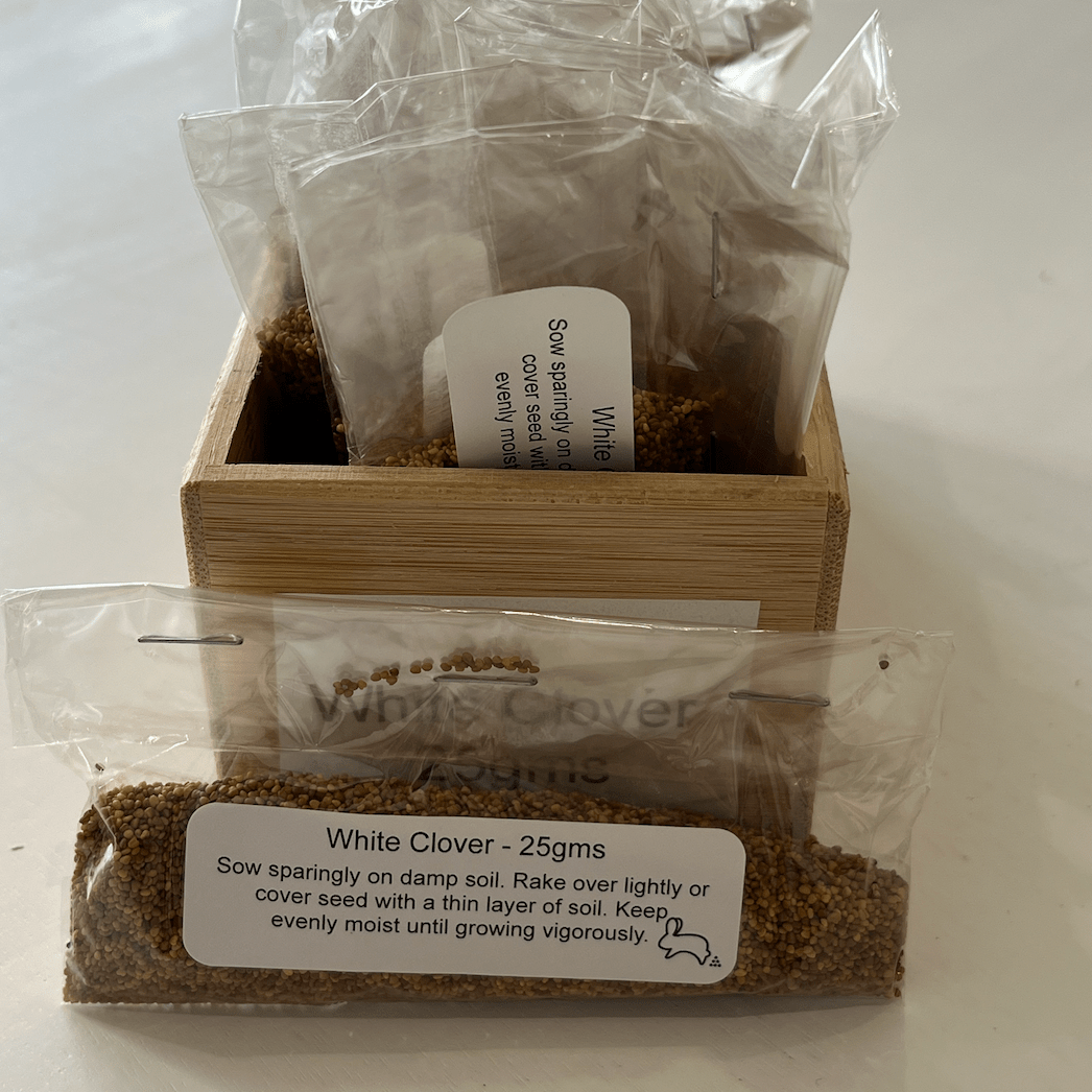 White Clover - White clover is perennial forage legume. It is grown throughout New Zealand and performs well on moderate to highly fertile soils, but can be less productive and persistent in dry situations. The ideal sowing depth for most legumes is around 10 mm with good consolidation. Recommended sowing rate of 8gms/m2. Clover is a legume so can potentially be gassy. Feed in limited amounts, totally fresh and un-wilted.