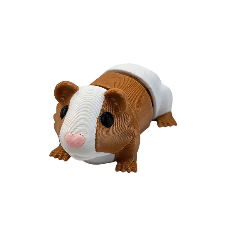 This is a 3D-printed guinea pig toy with articulated joints. Its flexible design allows it to wiggle and move naturally when you play with it in your hands, making it both cute and interactive.