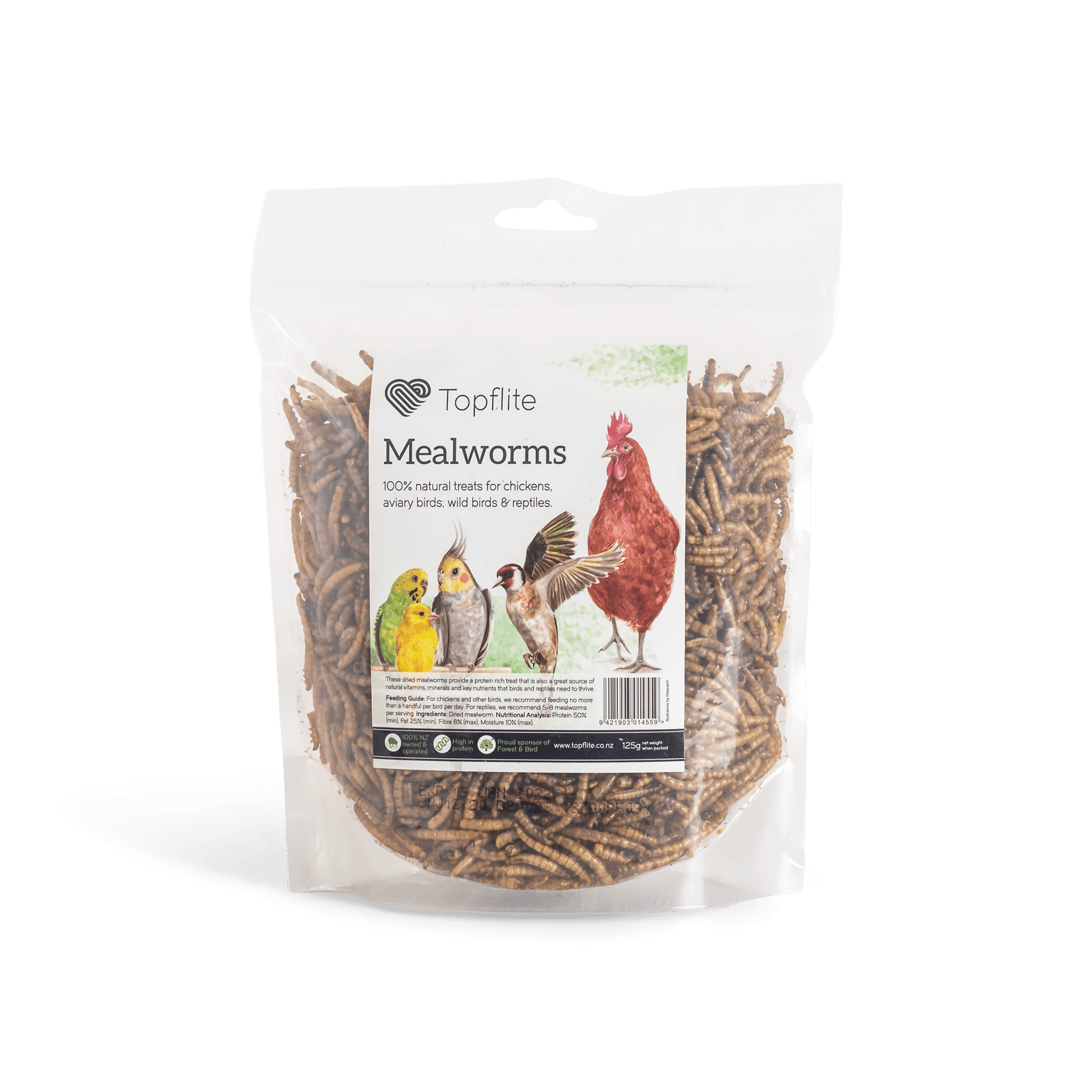 It’s not just New Zealand’s wild birds that love mealworms – finches, canaries and other smaller species of aviary bird also love a tasty snack. Also pet reptiles love a dried worm to chew on.