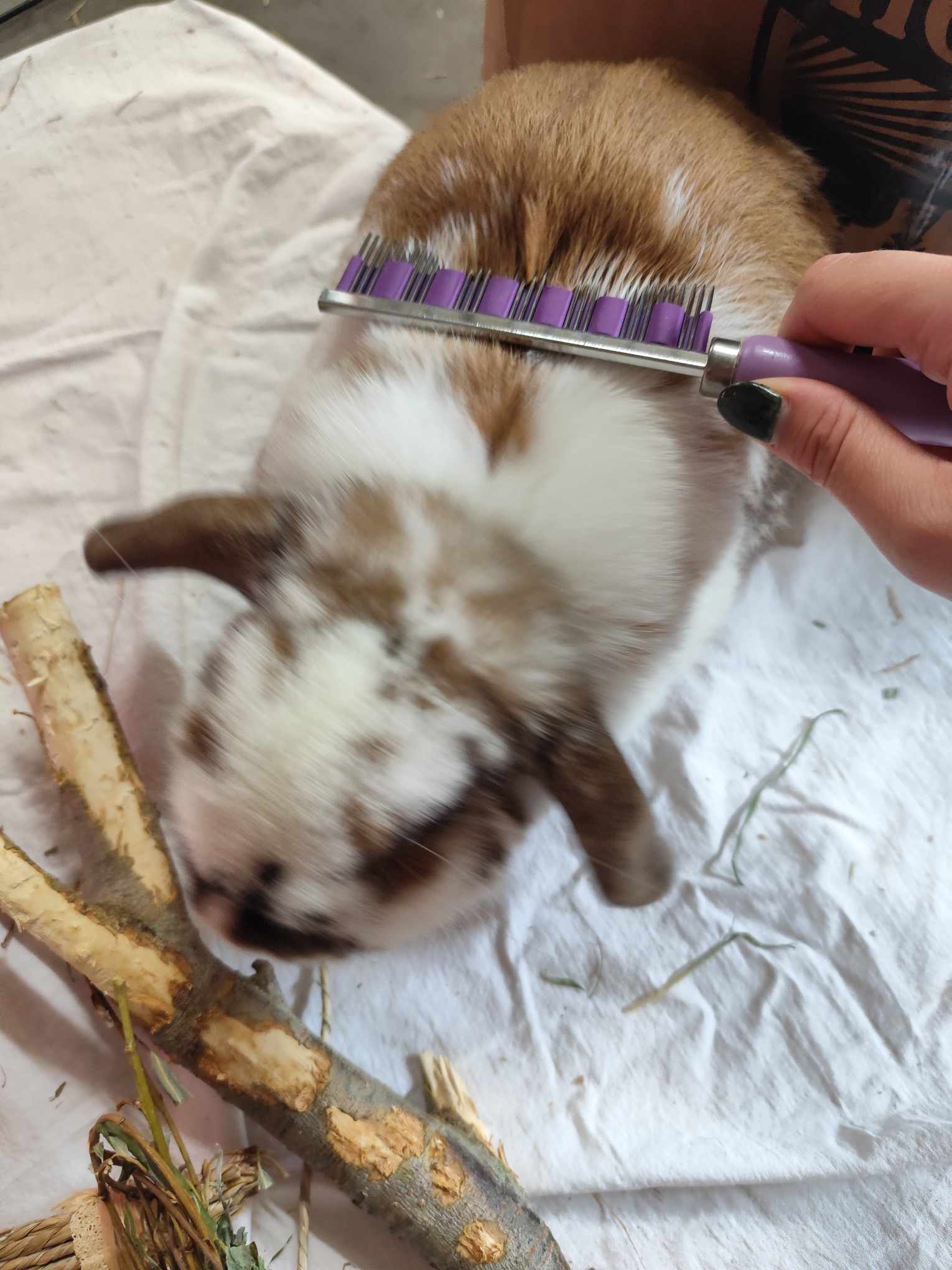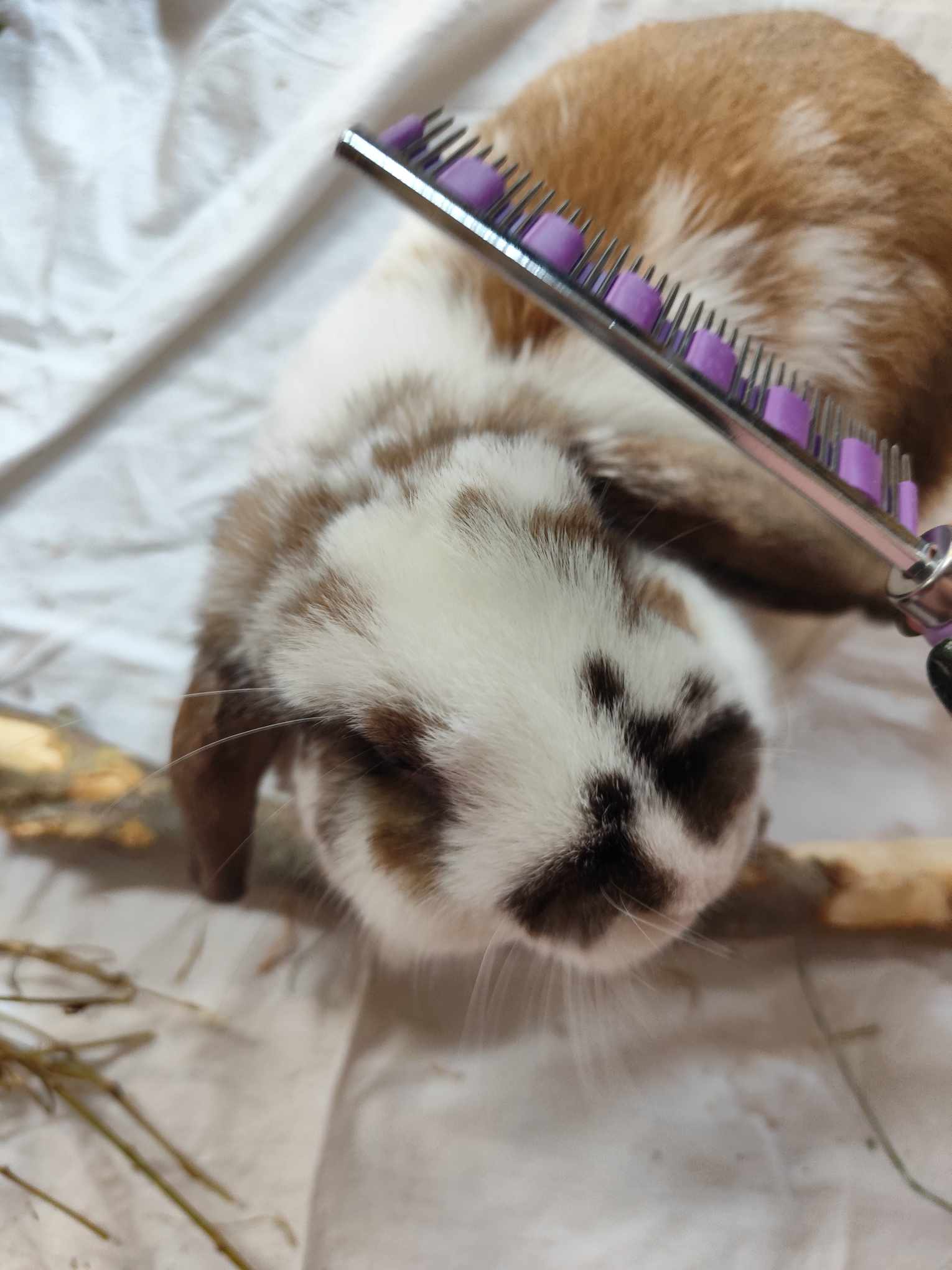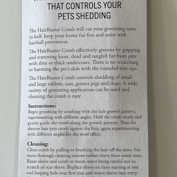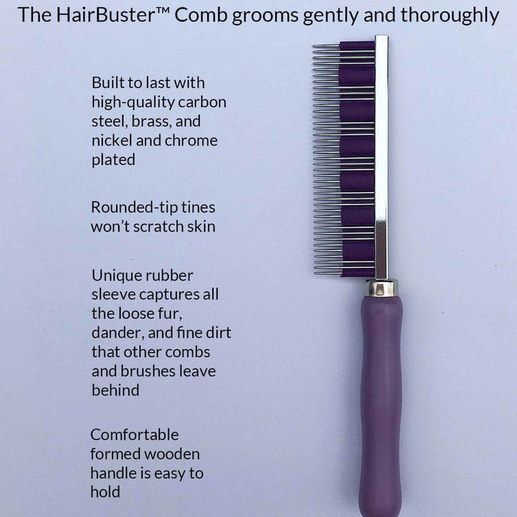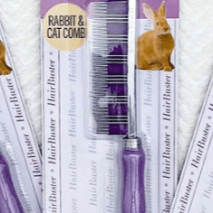 The HairBuster Comb is the Gold Standard of Rabbit Combs. It controls shedding of all our furry rabbits, guinea pigs, cats, and dogs. In rabbits, shedding seems can often be continual. The HairBuster comb includes a long lasting unique sleeve that is woven within the tines for an optimum grip, storage, and removal of loose, dead, and tangled pet hair.