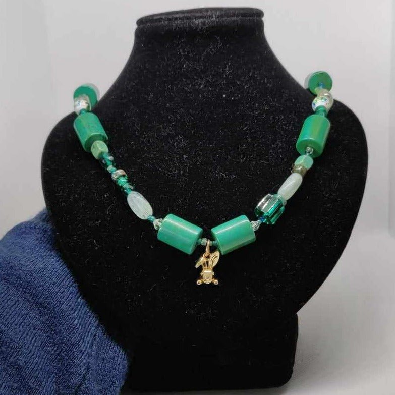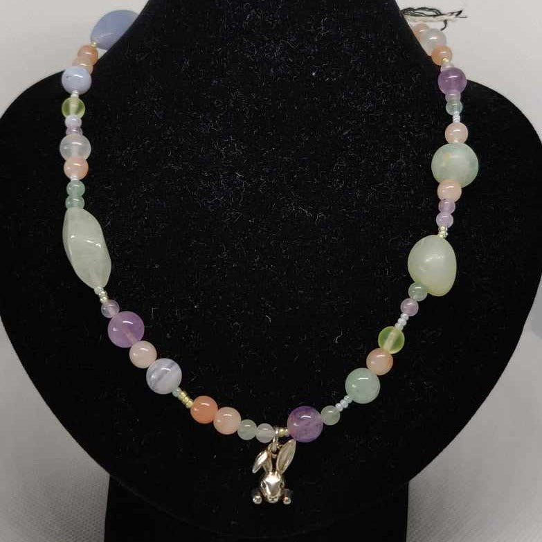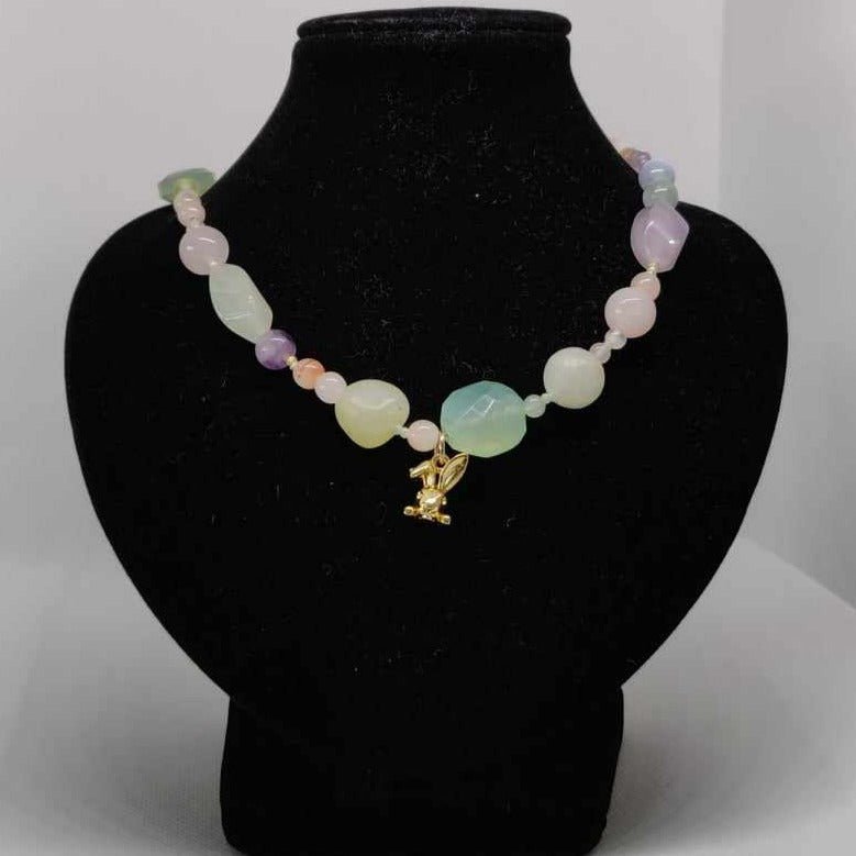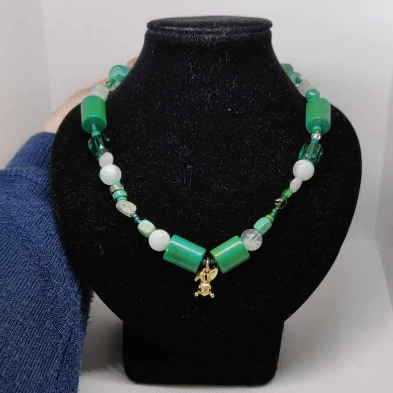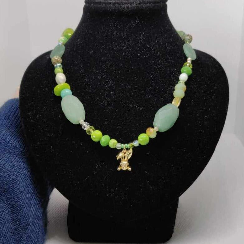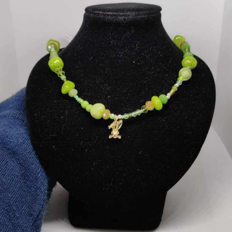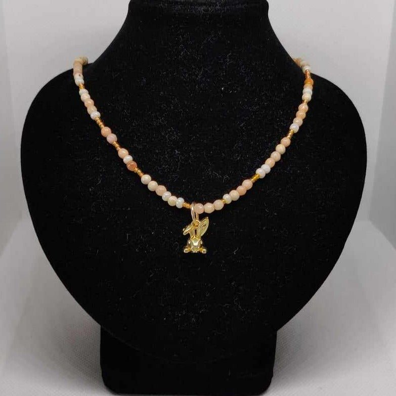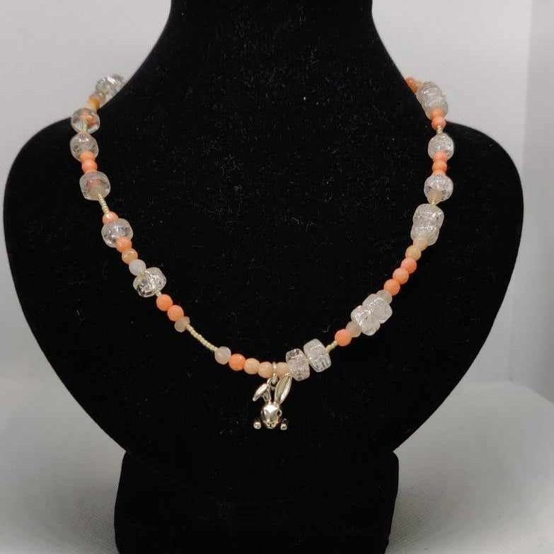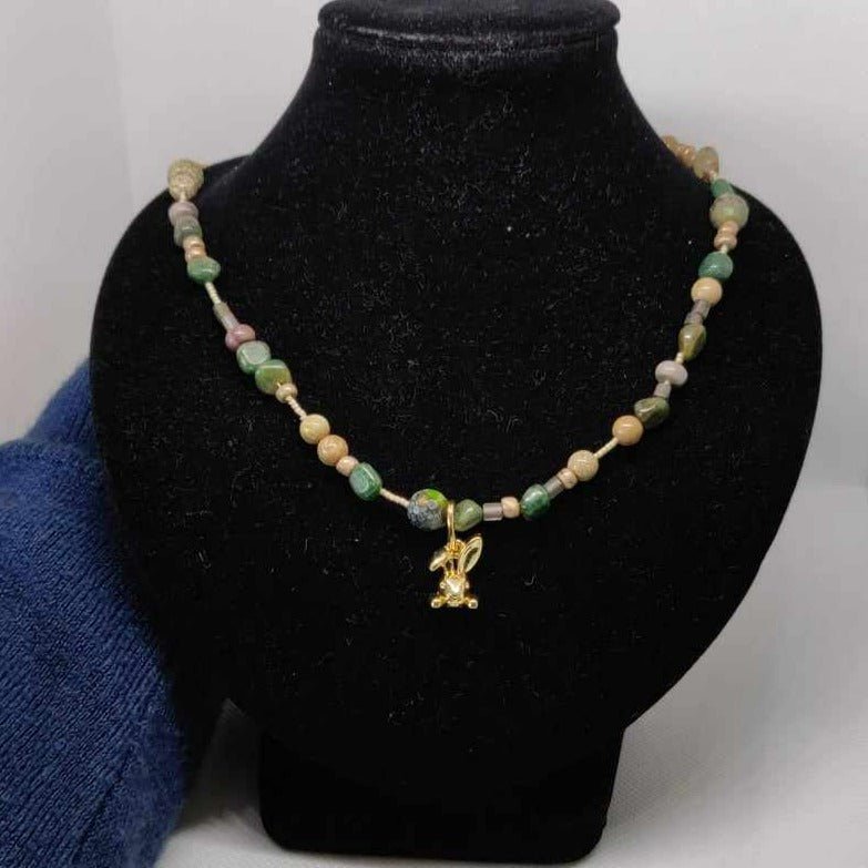 Precious stones, Vinatge beads, Bunny Necklace (REDUCED TO CLEAR)