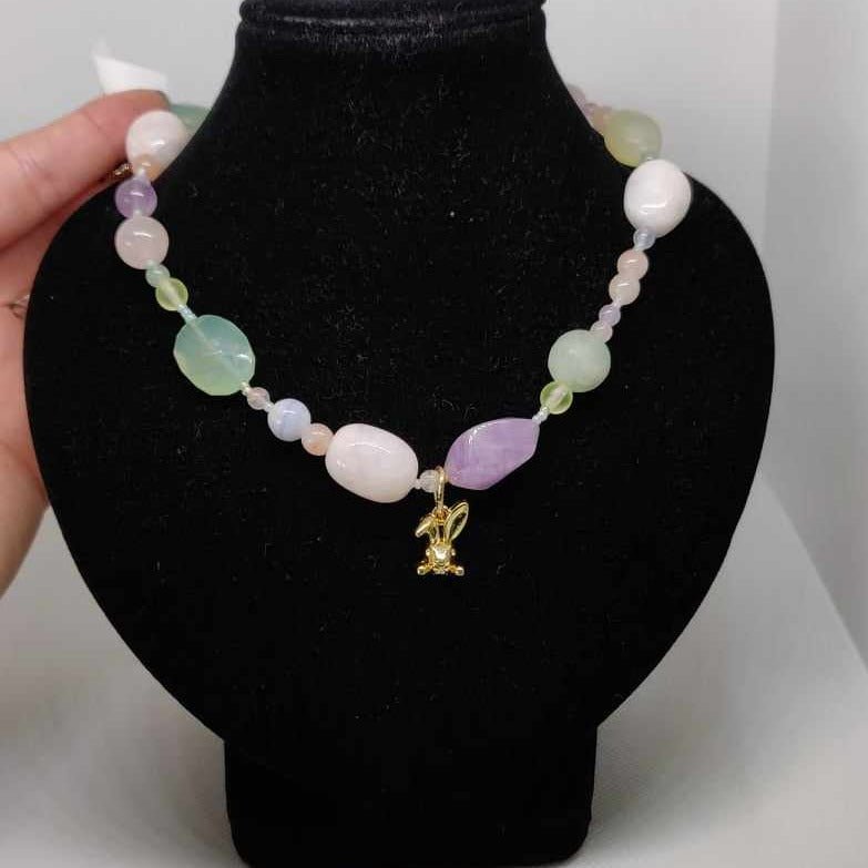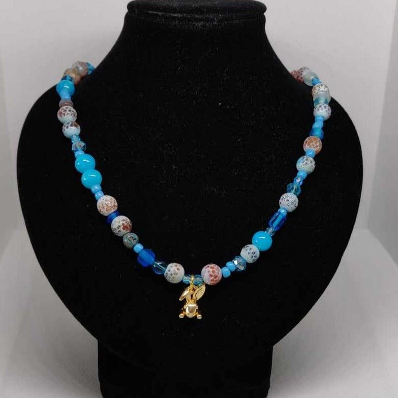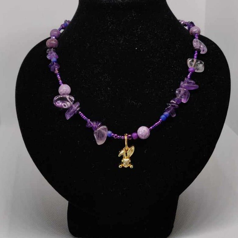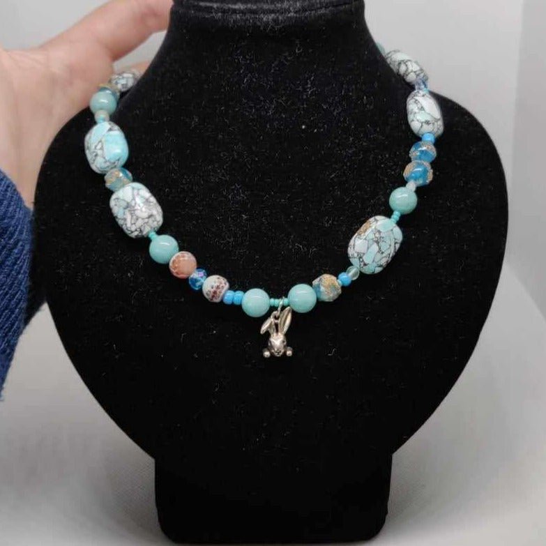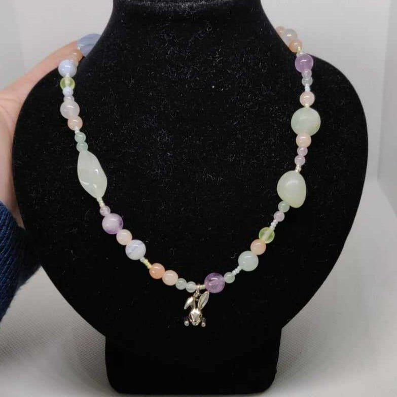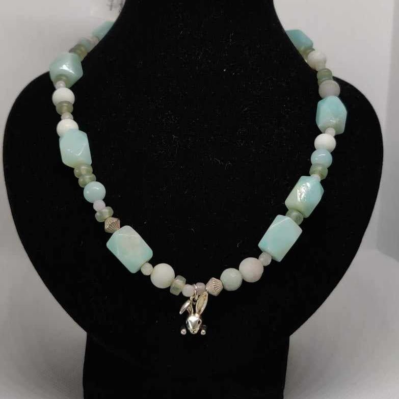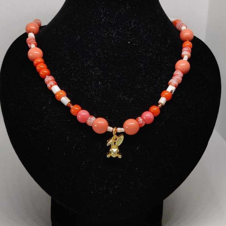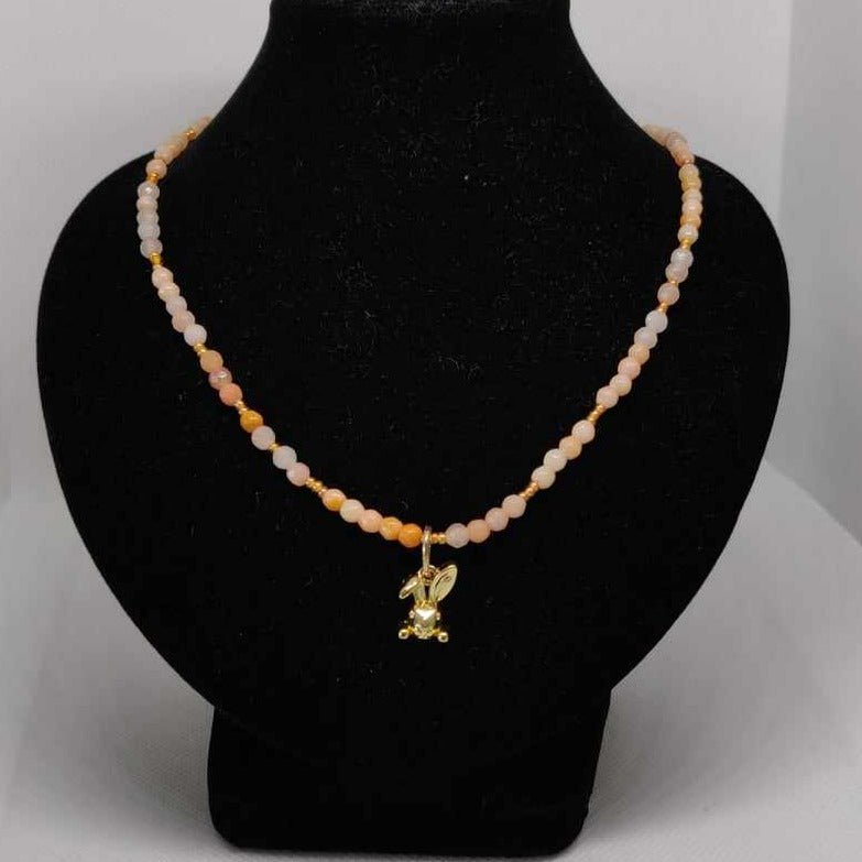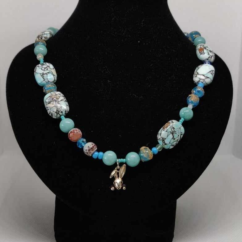 Precious stones, Vinatge beads, Bunny Necklace (REDUCED TO CLEAR)