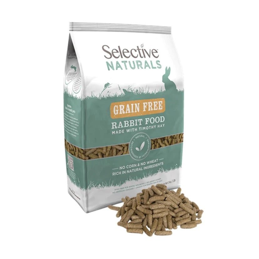 Selective Naturals Grain Free is blended with temptingly tasty Timothy Hay to help promote the good health of rabbits. High in fibre and grain-free, Selective respects the natural diet, with this delicious recipe that includes essential forage and garden vegetables.
