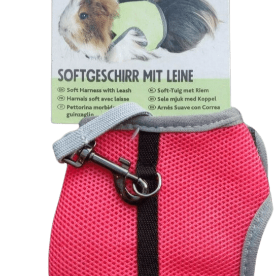 Soft Padded Harness for small guinea pigs, small rabbits and ferrets. Soft harness with fully elasticated lead, 1.2m. Good fit. Made of hard-wearing mesh material and nylon. Stomach circumference 18 - 25cm