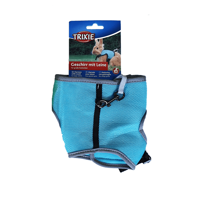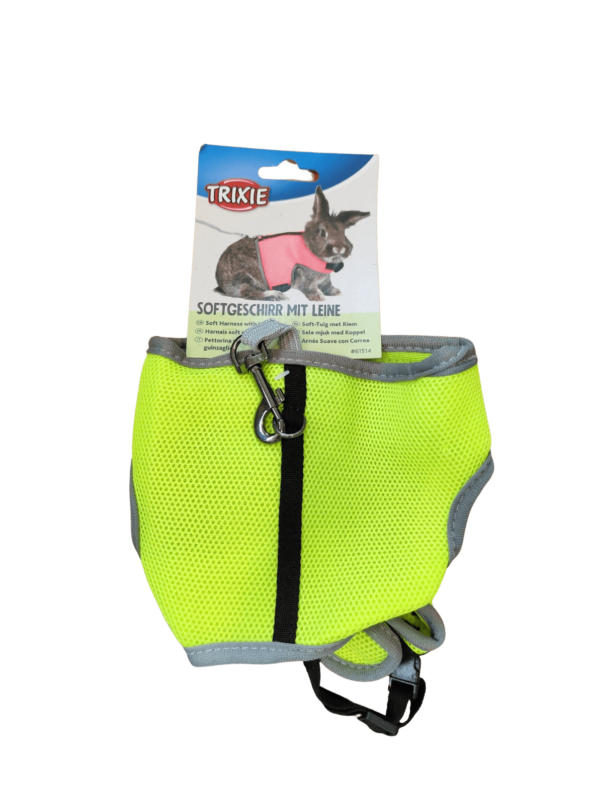 Soft Padded Harness for rabbits.Soft harness with fully elasticated lead, 1.2m.Made of hard-wearing mesh material and nylon with velcro band.