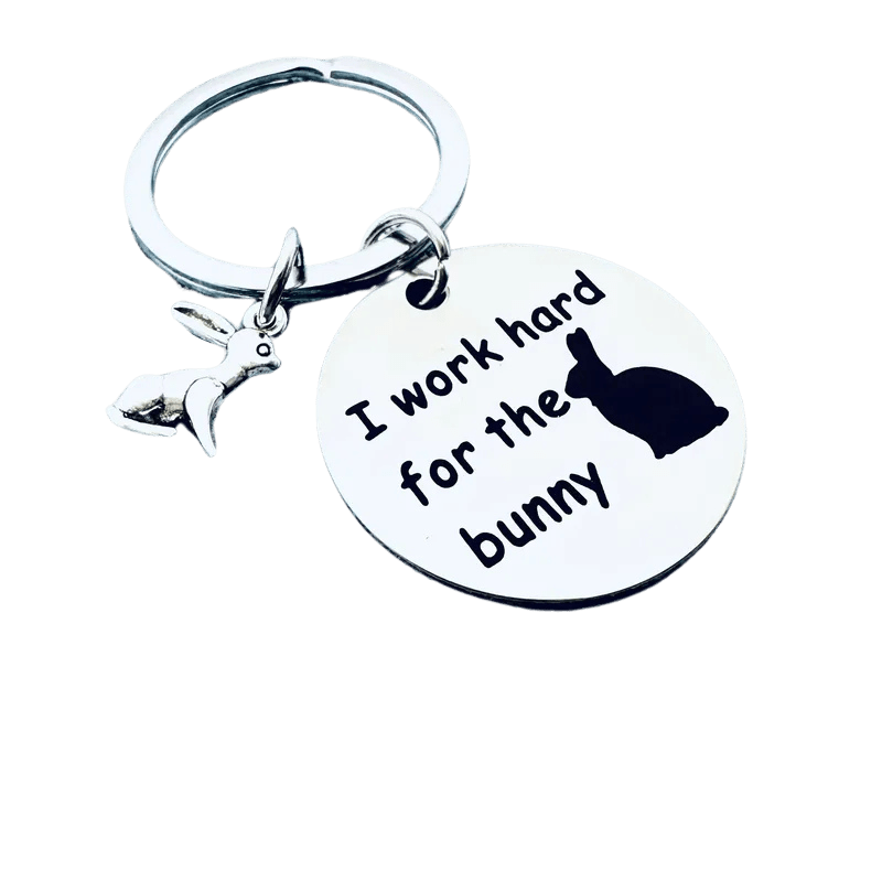Carry a sweet reminder of who truly motivates you with this durable, stainless steel key chain. Clean, crisp engraving ensures your message—“I Work Hard for the Bunny”—always stands out, and its lightweight design makes it easy to attach to keys, bags, or backpacks.