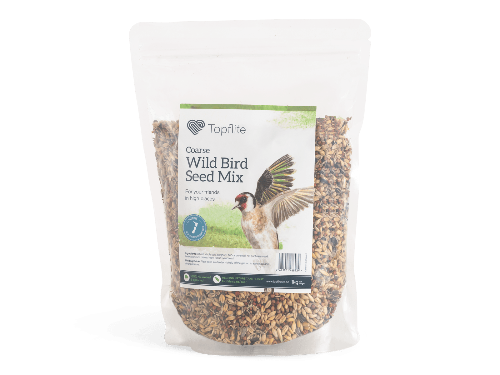 Topflite seed products are formulated to provide high-quality nutrition for a wide range of local birds. This coarse mix goes great in one of our feeders, attracting birds to your garden for year-round enjoyable viewing. A premium mix of top-quality NZ-grown seeds provides essential energy to wild birds to thrive in your garden. Grown in the rich soils of Coastal Otago, Topflite seed contains more nutrients than imported seed providing birds with the trace minerals and vitamins they need to stay healthy.